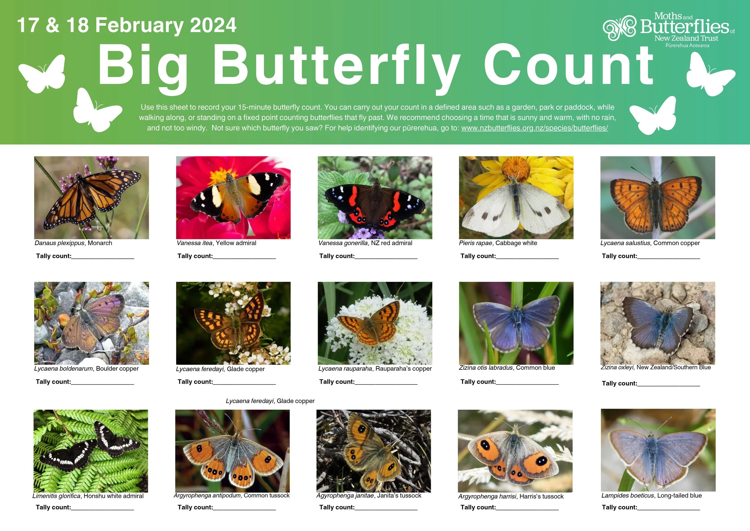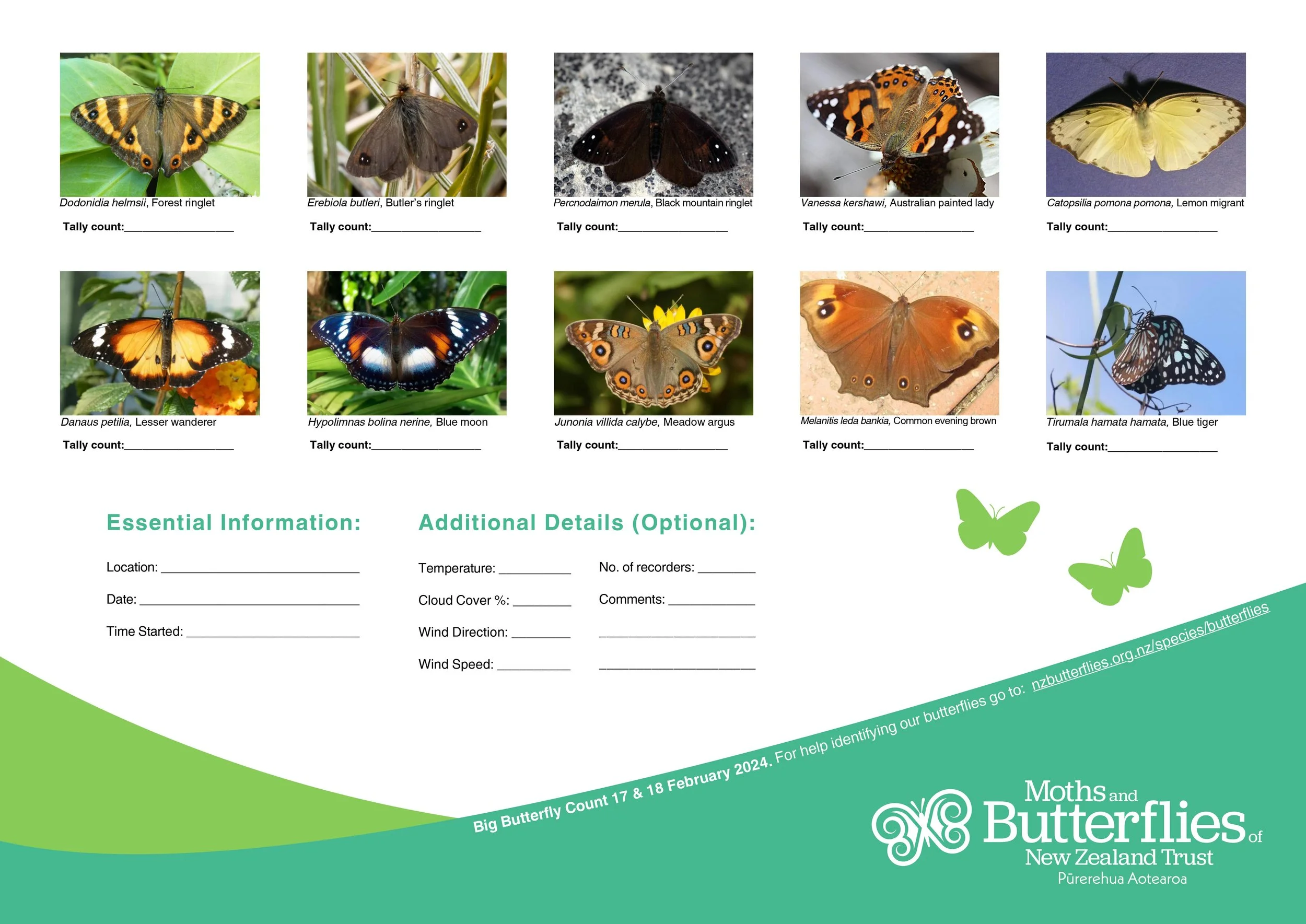 The Moths and Butterflies of New Zealand Trust have an awesome PDF recording sheet that you can download here