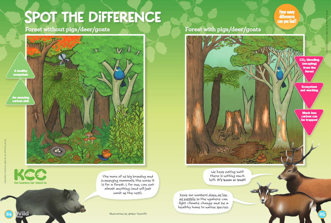 The infographic below is from KCC magazine. We think it does a great job of explaining the differences between having moa in our forests eating the plants, and having deer in the forests.