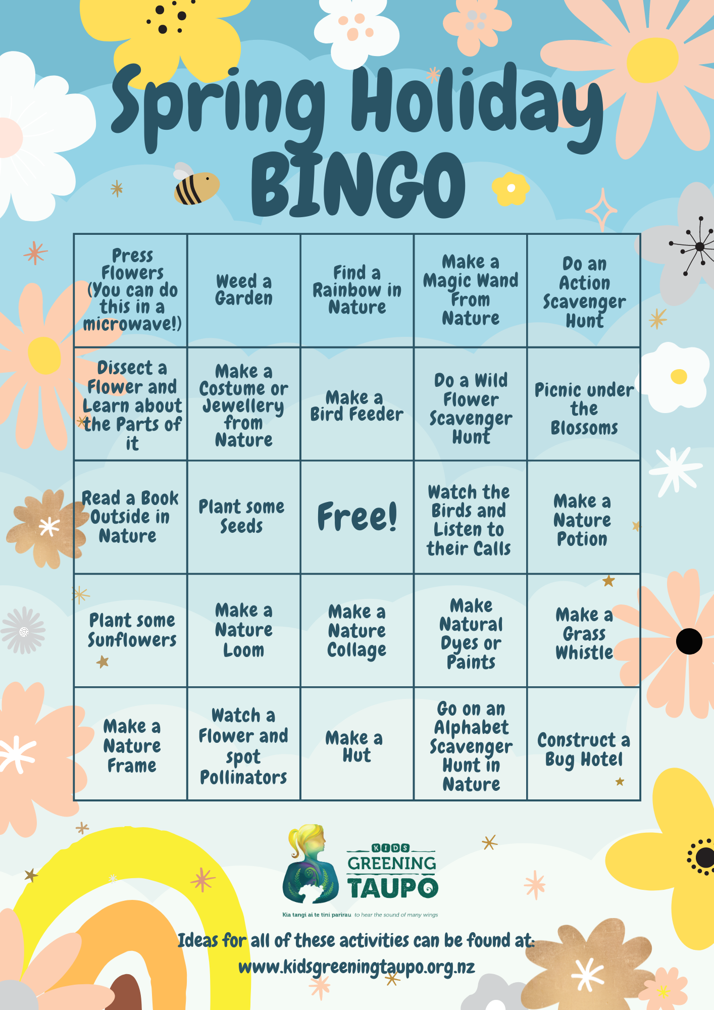 Here’s a fun challenge for your Spring Holidays! Click on the picture below to download the pdf. You can click on each activity to go to the corresponding Nature Connector on our website for instructions on how to complete the task, along with ideas of ways to adapt or extend it. Some of them have free printables too.