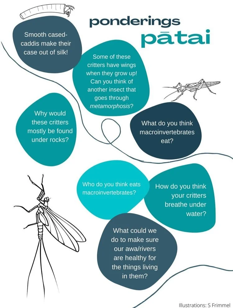 Head out to a local stream, river, lake, or pond with your whānau to learn about the cool creatures found living under the water and seen flying above it- freshwater macroinvertebrates.
