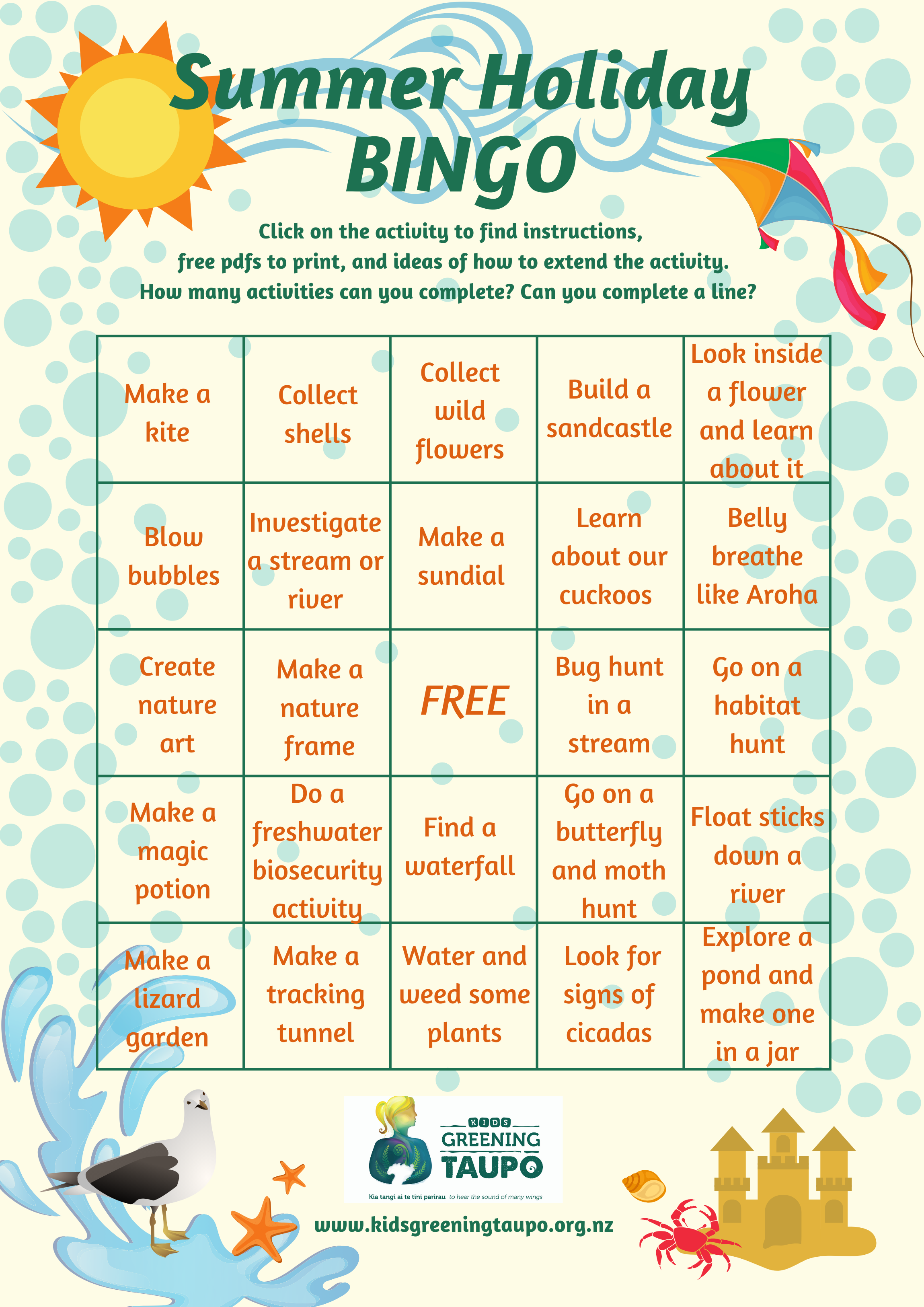 Download the free pdf, then click on an activity it will take you to a Nature Connector that will give you lots of ideas of ways to complete the activity. Many of them have links to resources, videos, and other fun ways to extend the activity. You will find fun science, art, craft and conservation activities. All of them are designed to get you outside connecting to nature and learning about your environment. Remember to slip, slop, slap, and wrap. Have fun in the sun!