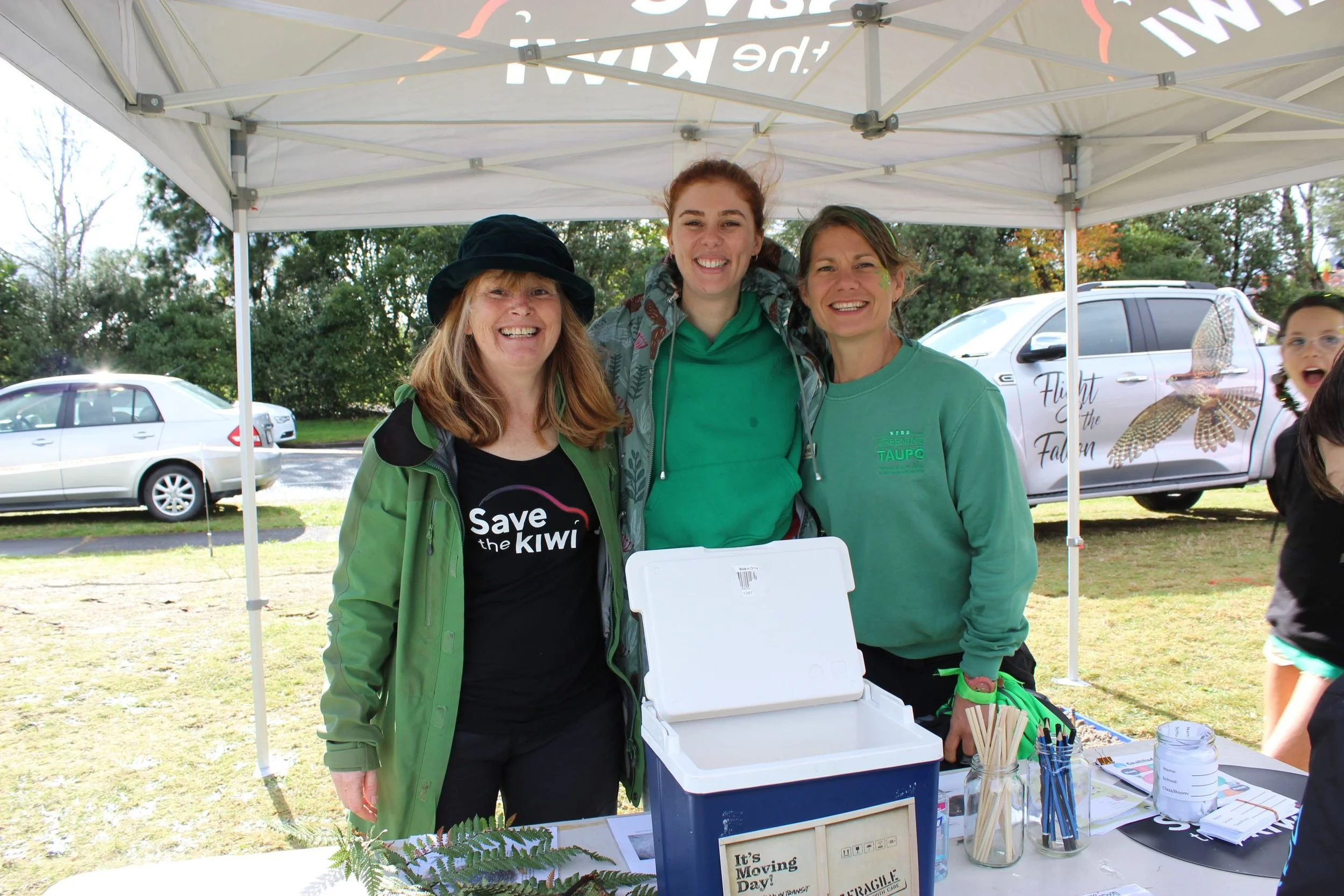 Over 40 local businesses and organisations had stands onsite with activities for the children. Most of them had an environmental education message. Participants could learn about native bats from DOC, build a trap with Forest and Bird, investigate freshwater macroinvertebrates with the Tongariro Trout Centre, shoot predators using nerf guns with Contact Energy, find out about bird banding with Maungatautari Sanctuary Mountain, dissect owl pellets with Wingspan, guess the native plant species with Ngaroma Nurseries, hunt for worms like a kiwi with Save the Kiwi, learn about native bees with Huka Honey Hive, repurpose old books with Taupō library, play a recycling game with TDC, and take part in a wetland experiment or see the kauri dieback model with Waikato Regional Council. There was bug hunting, fungi on display, bush tea tasting, and obstacle courses. Children could ride bikes on the new pump track with Kids Bike Taupō or have a go with a frisbee thanks to Taupō Disc Golf. There were fire engines and police cars to check out, and face painting for kids. Local author/illustrator Donovan Bixley painted a beautiful karearea and signed books. These were just some of the fun activities offered.