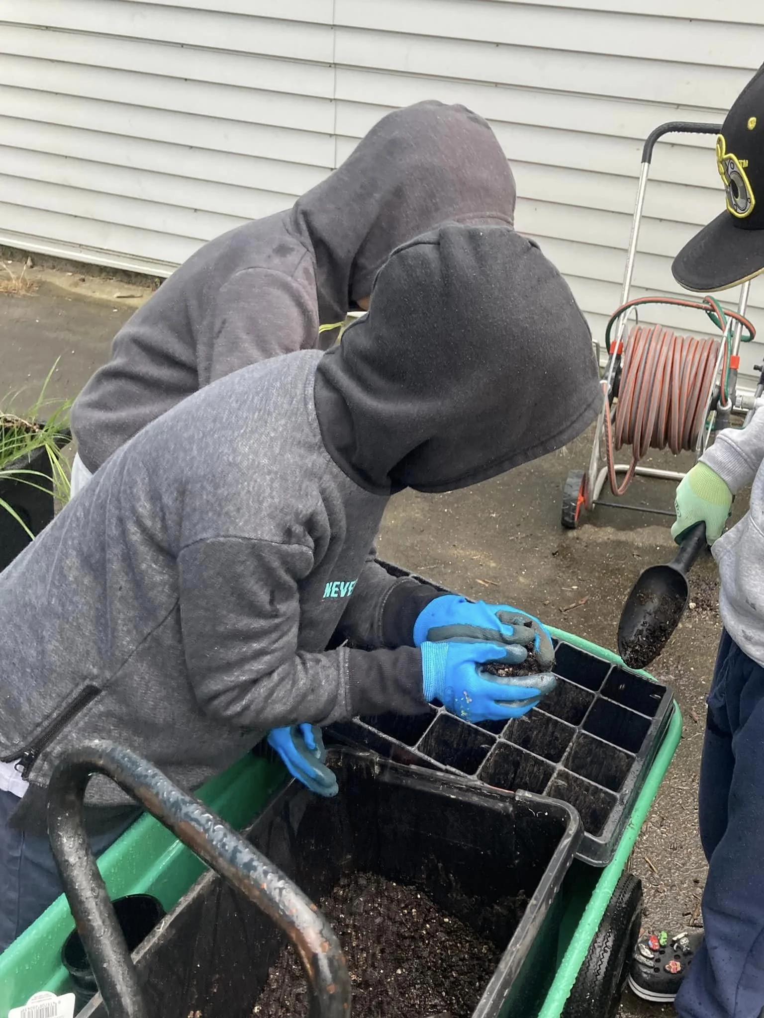Waipahihi School started their own initiative to help out Wainui Beach School in Gisborne to replant native trees to replace what they lost in the cyclone. With the help of Ruud “The Bug Man” Kleinpaste and Field-Based STEM, Waipahihi Botanical Reserve, and KGT, students collected a couple of hundred native seedlings from their own school grounds as well as the gardens. They have potted them up and are planning to care for them until Wainui Beach School is ready to replant their grounds and other places in their community. Then they will send them over for them to plant. This is such a great example of hands on learning through real life collaborative projects while developing compassion for others.