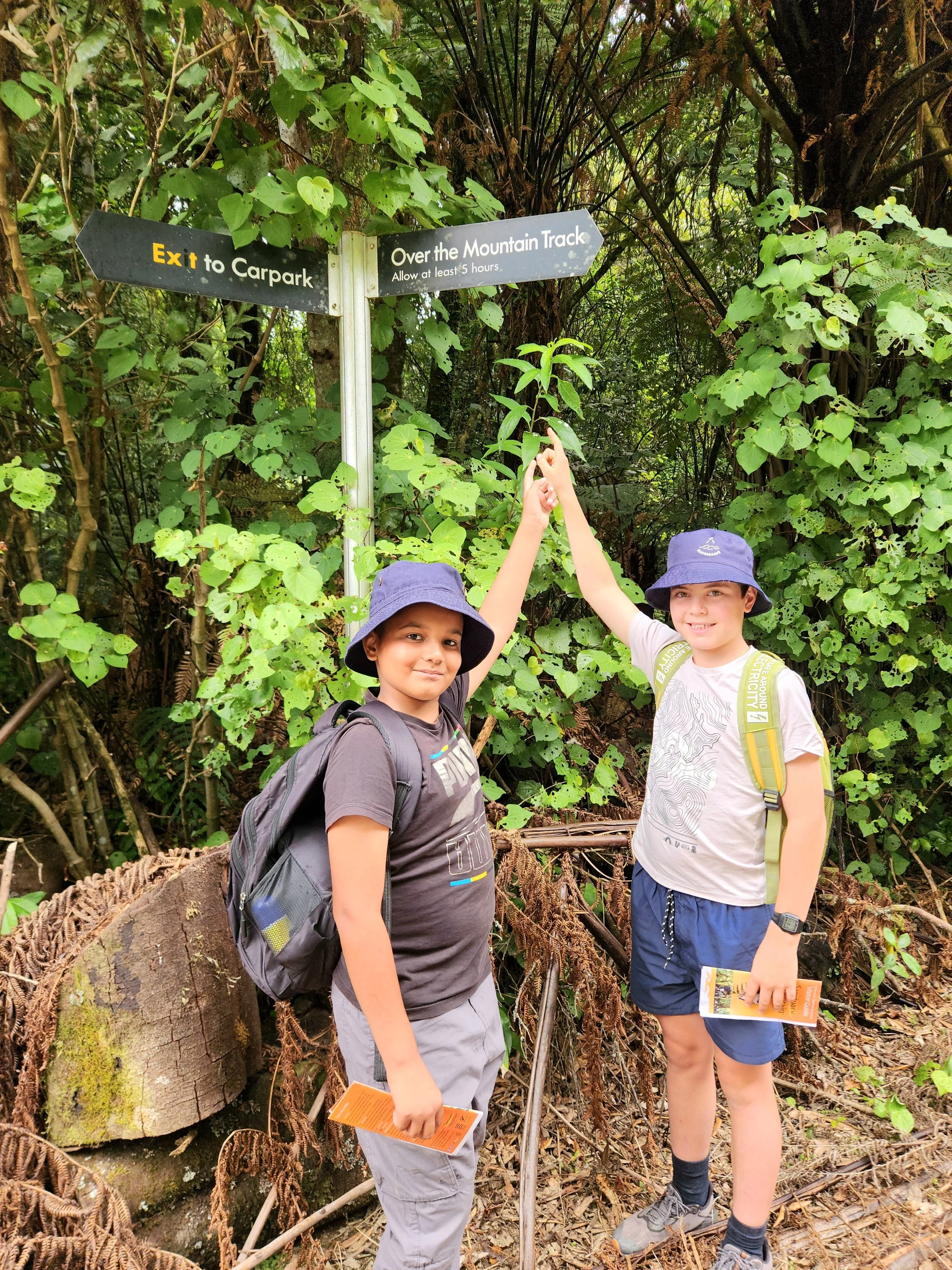 After lunch and cleaning up, we explored the gift shop and got ice creams. Then, we played some games on the grass before heading off for our last challenge - the Te Tūī a Tāne Treasure Hunt through the Southern Enclosure. It had us reading information signs in the beautiful forest, climbing the tall tower to see what the canopy is like, and watching kākā screeching around the bird feeder area. One kākā flew so close that its wing brushed the ear of a student!