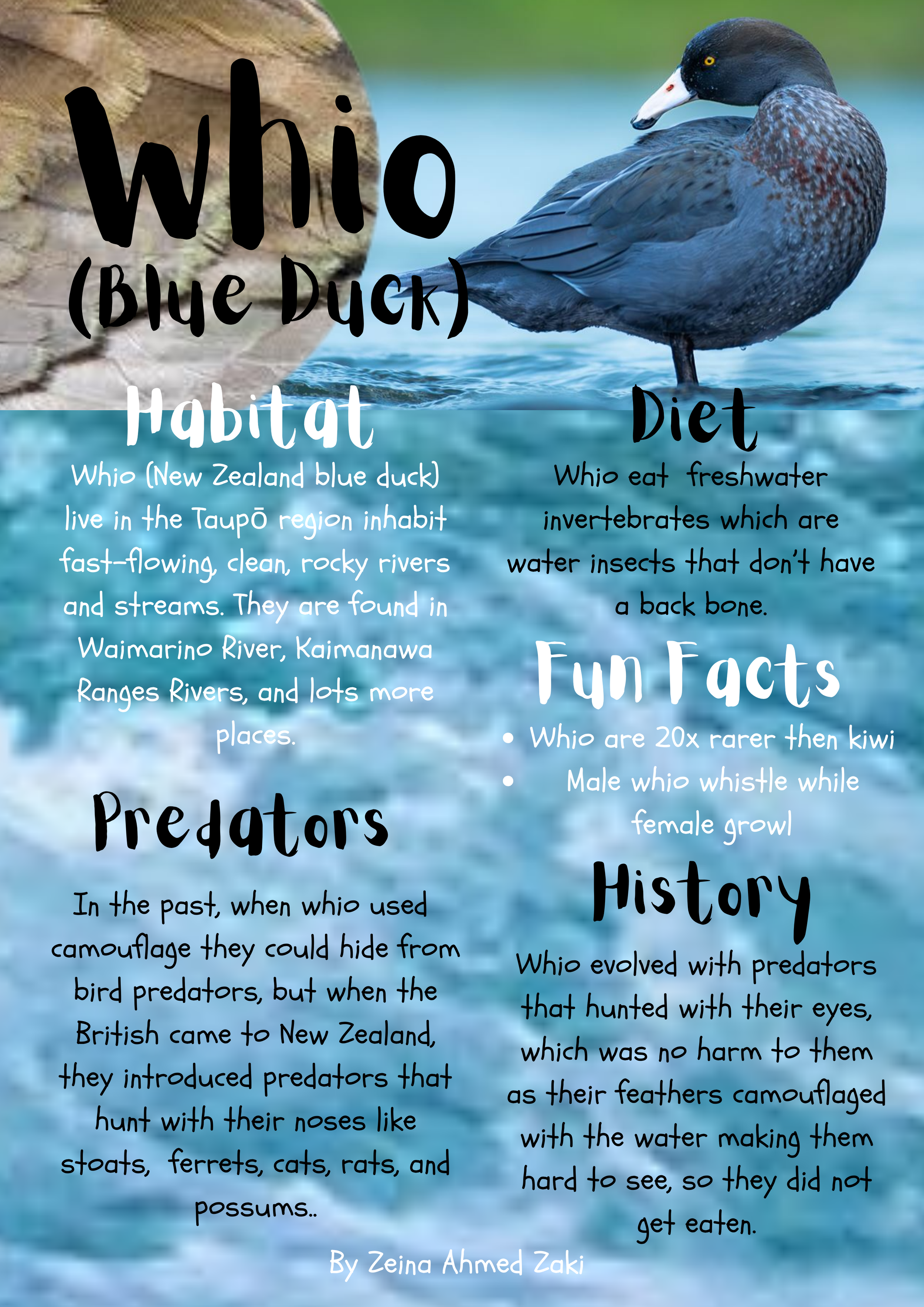 Congratulations Zeina Ahmed Zaki from Taupō Primary School! Check out her beautiful poster about whio!